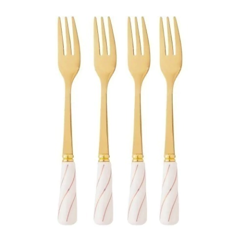 GARFO APERITIVO DOURADO COM CABO DE CEÂMICA BRANCO - CONJUNTO COM 4